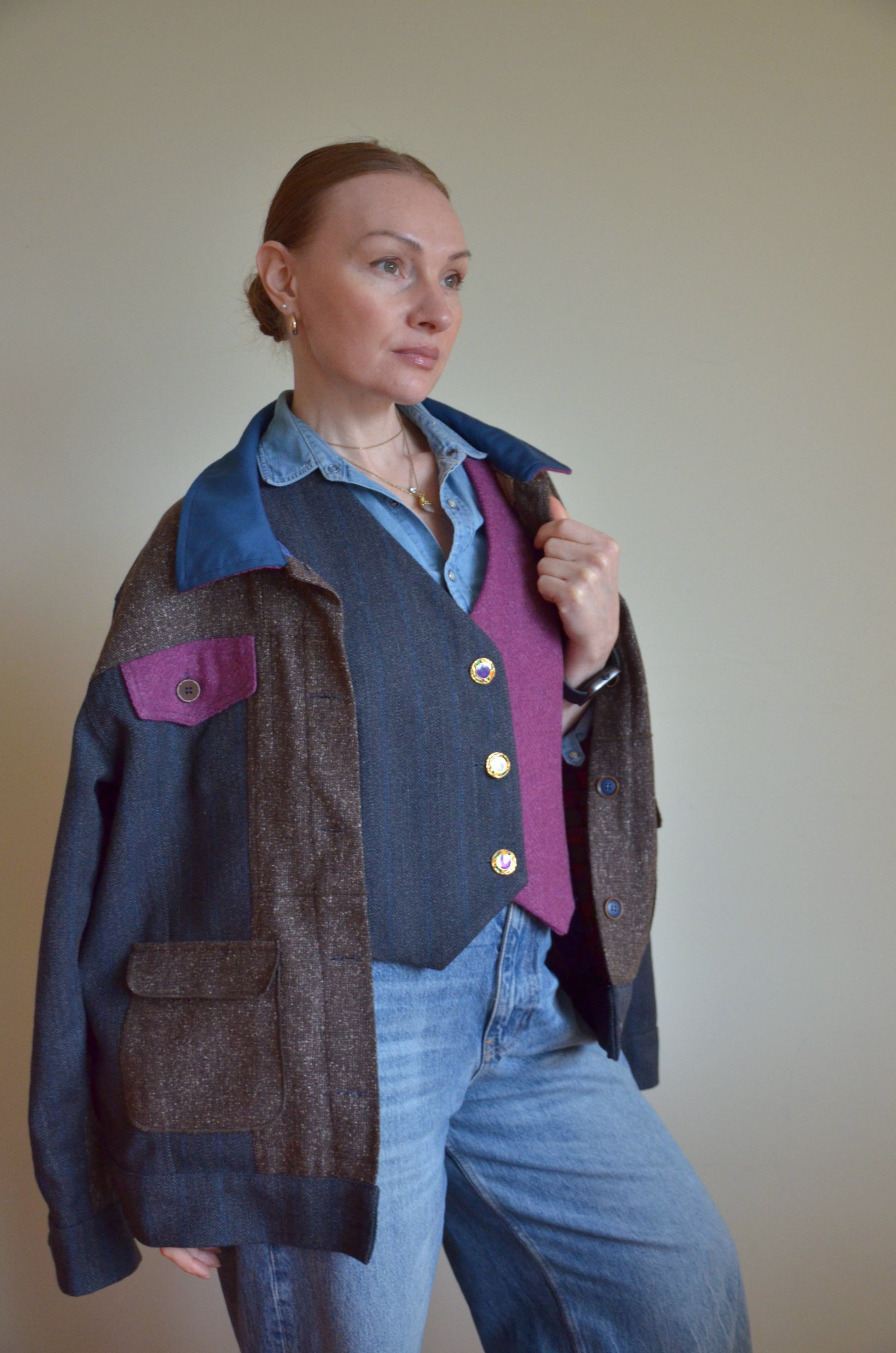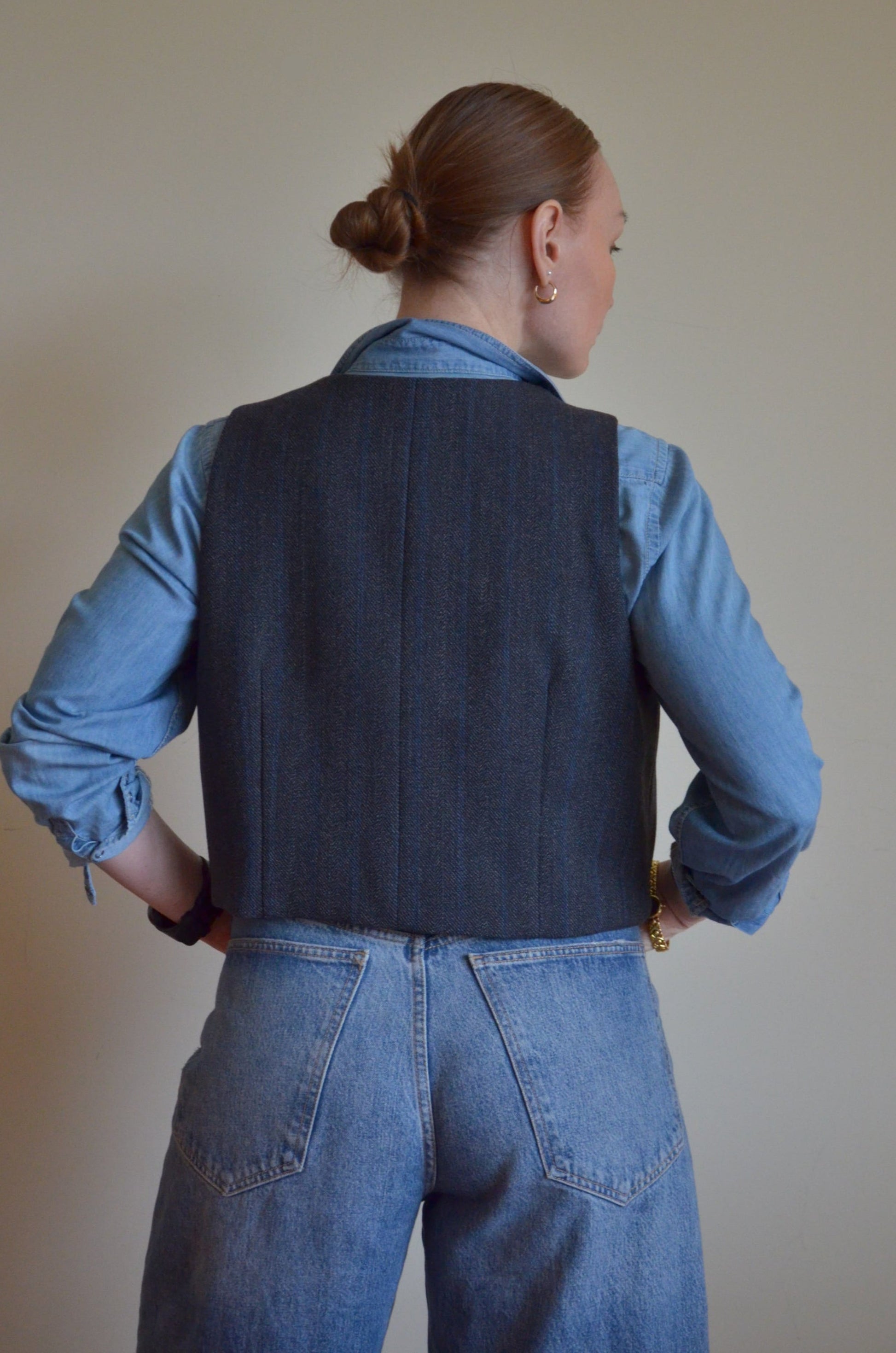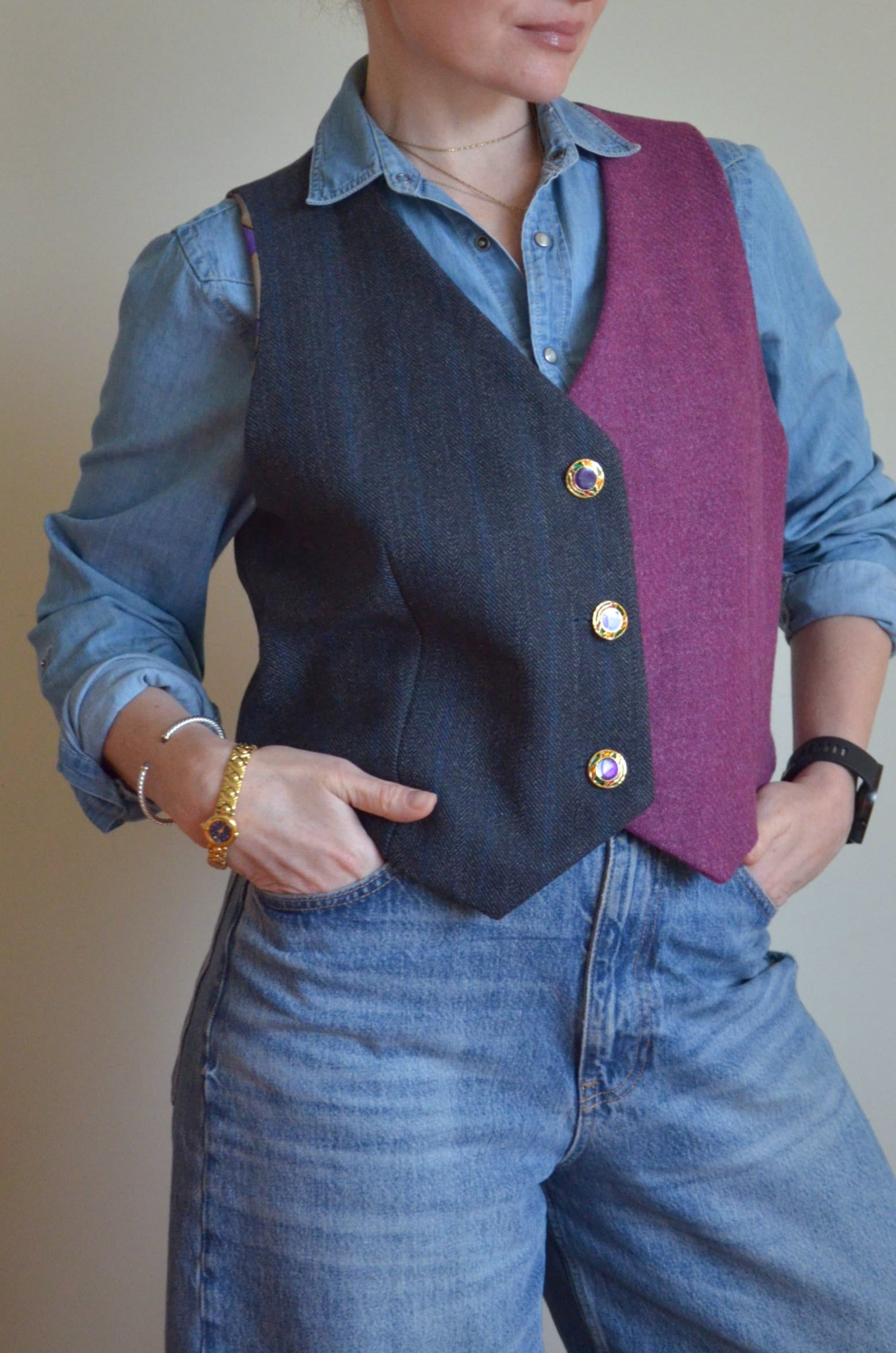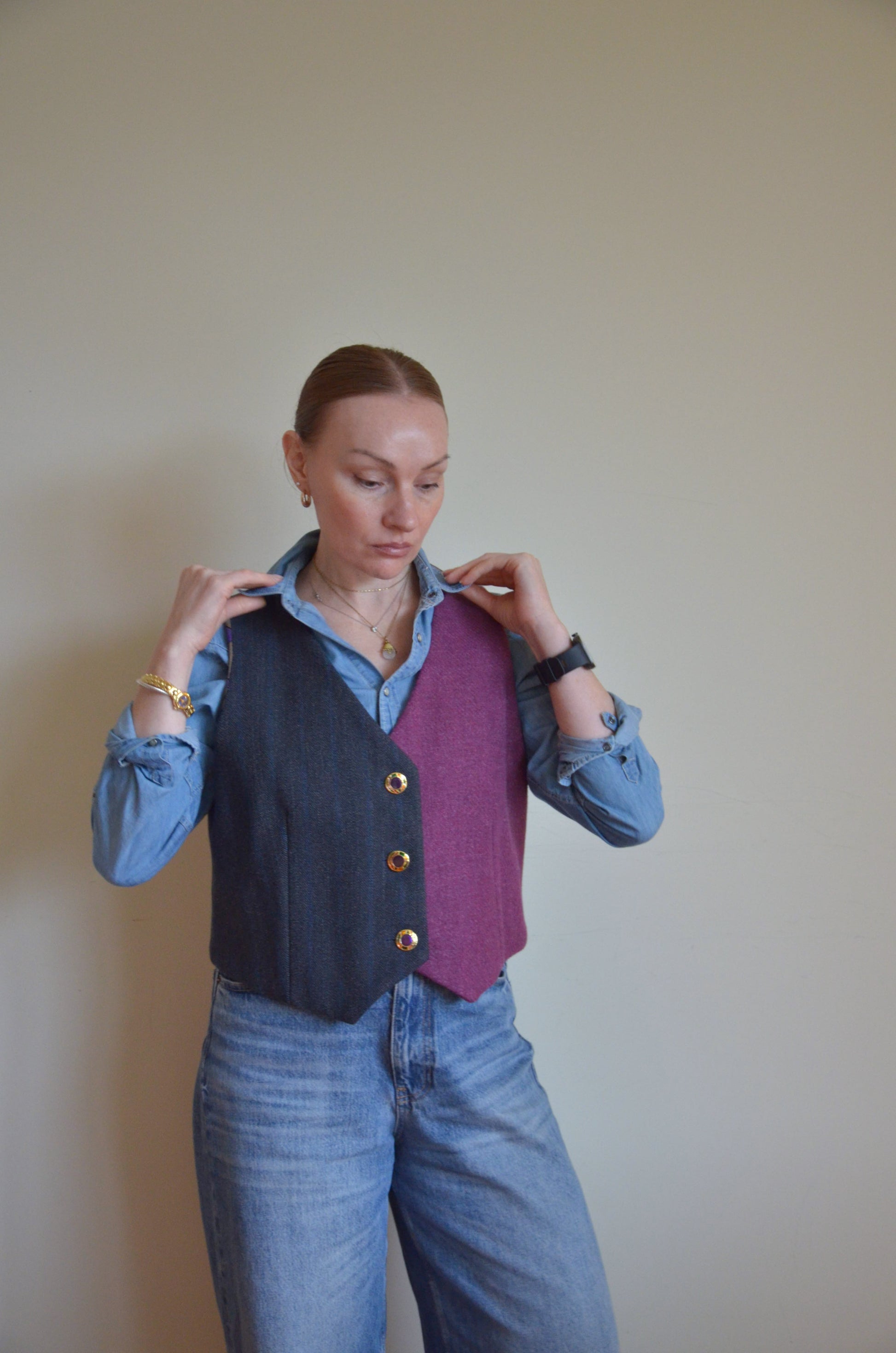 Two-toned woolen vest. The gold-colored buttons are a chic bright detail. It's stylish and easy to fit in any wardrobe.